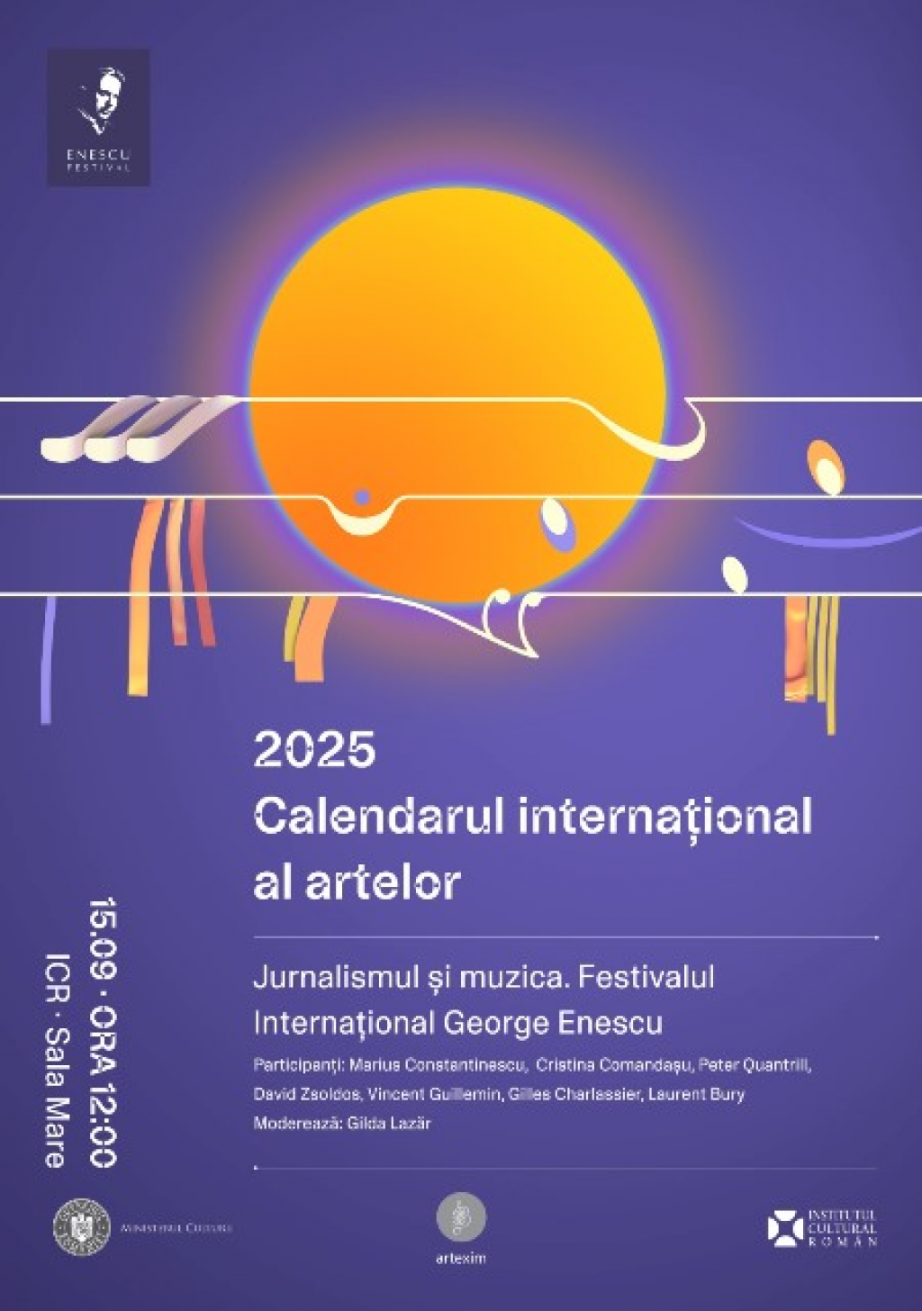 Institutul Cultural Român, prin Centrul Național al Cărții și în parteneriat cu ARTEXIM, organizează luni, 15 septembrie, de la ora 12:00, dezbaterea „Jurnalismul și muzica. Festivalul Internațional George Enescu. Evenimentul face parte din programul „Calendarul internațional al artelor 2025 și va avea loc la Sala...