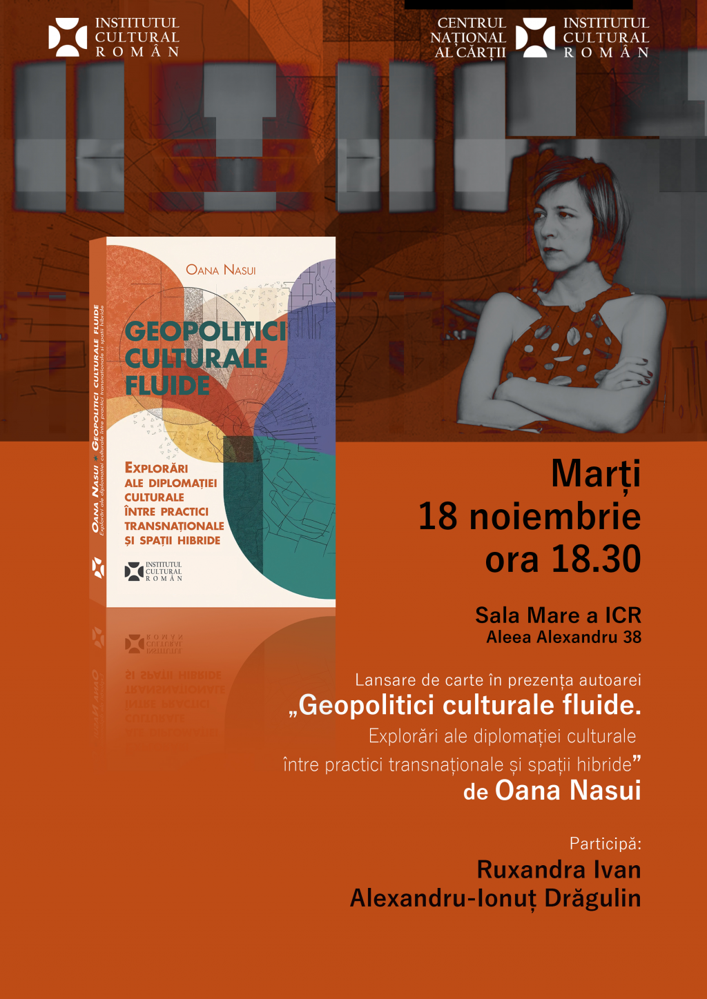 Marți, 18 noiembrie, la ora 18. 30, la Sala Mare a Institutului Cultural Român (Aleea Alexandru nr. 38) va avea loc lansarea volumului „Geopolitici culturale fluide. Explorări ale diplomației culturale între practici transnaționale și spații hibride de Oana Nasui, apărut la Editura ICR. Vor lua cuvântul, alături de...